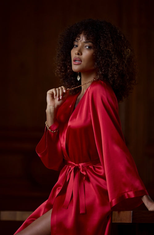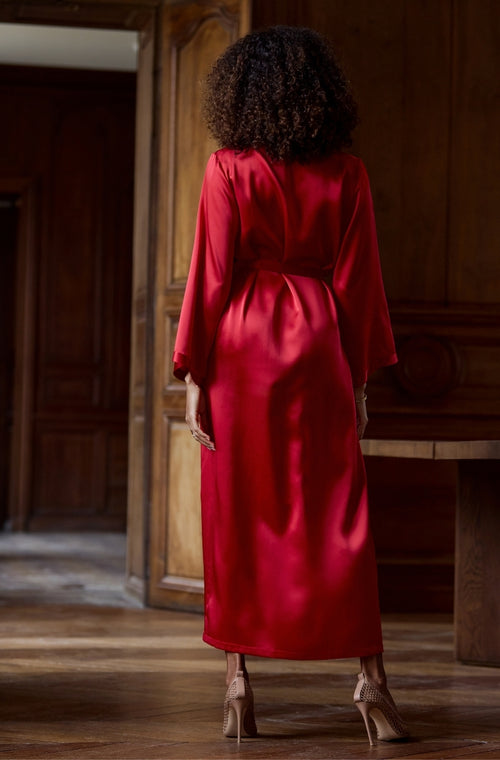 Long negligee in red silk Rouge