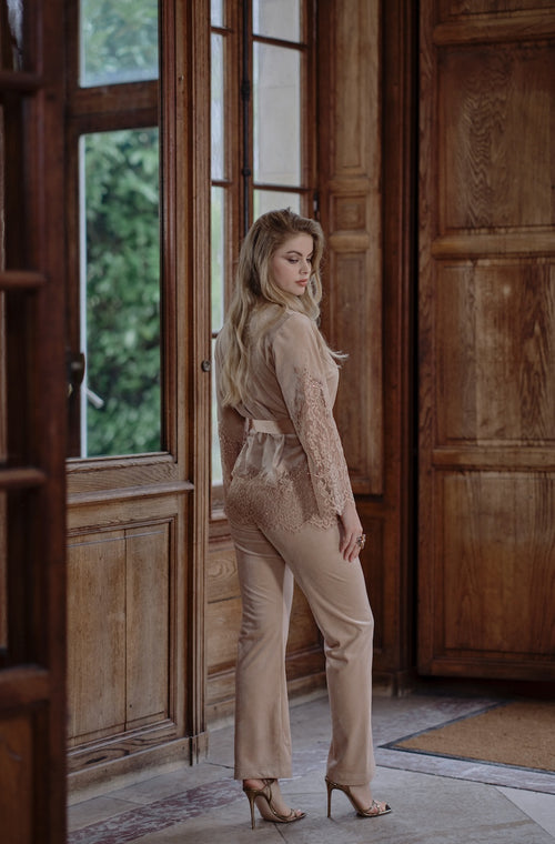 Immerse yourself in a world where shadow and light meet, where each piece reveals a fluid and poetic sensuality. The ÉCLIPSE collection invites you to discover creations in silk satin, floral embroidery, and delicate lace, fusing comfort and elegance. Every gesture, every detail, tells the story of a luminous femininity, suspended between dream and awakening.