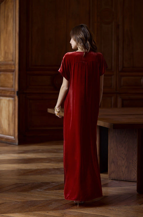 Chemise de nuit longue Velvet en velours rouge Bourgogne