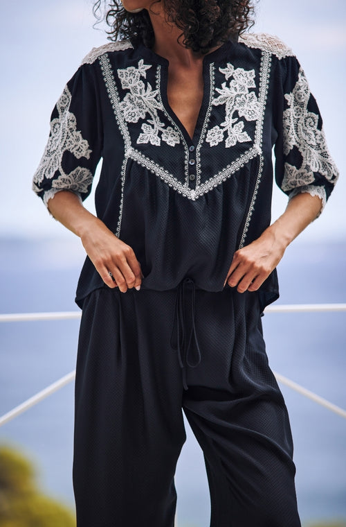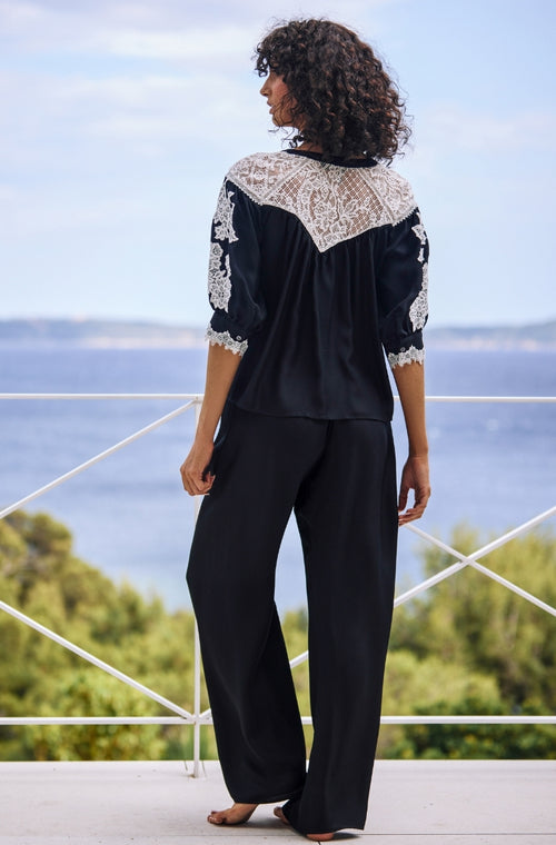 Au-delà du sommeil, nos pyjamas deviennent des vêtements d’intérieur chic, parfaits pour se détendre chez soi avec élégance. Un ensemble en soie accompagné d’un kimono ou d’un déshabillé en dentelle se métamorphose en tenue raffinée, à porter sans crainte même lors d’une soirée à la maison.