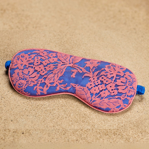 Masque de sommeil Becky en soie bleue et dentelle rose Celeste / Rose