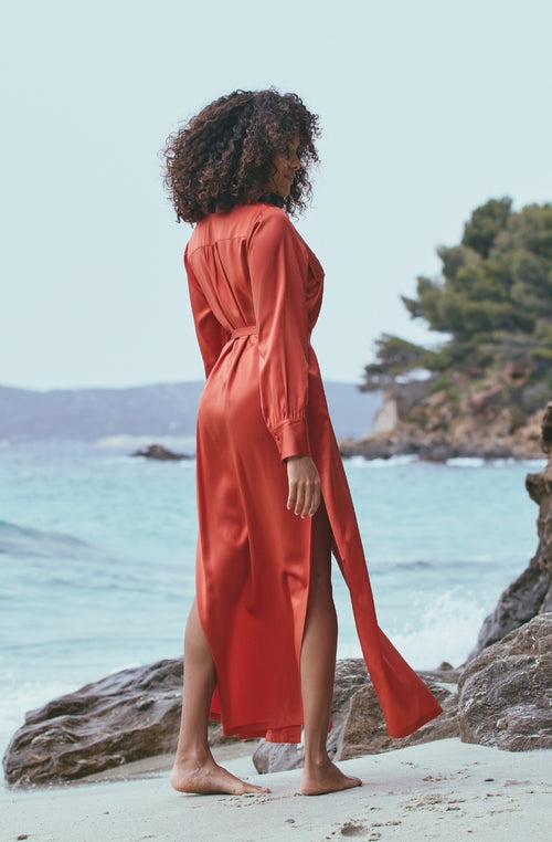 Les robes en soie Marjolaine sont pensées pour sublimer la féminité avec grâce et sensualité.
